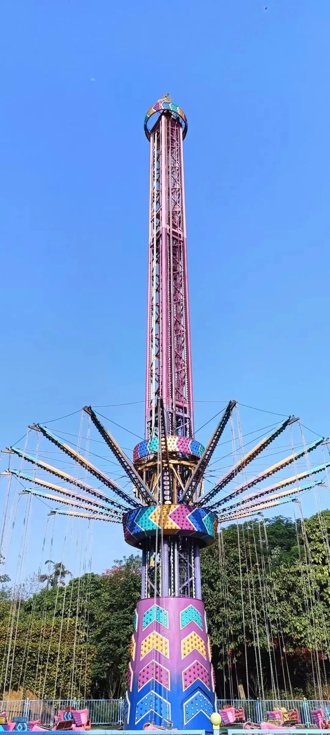 飞行塔:身高1.1米以下乘客不能乘坐,身高1.1~1.4米、12岁以下儿童必须有成人陪同乘坐;不得超过2人乘坐同一个吊椅。