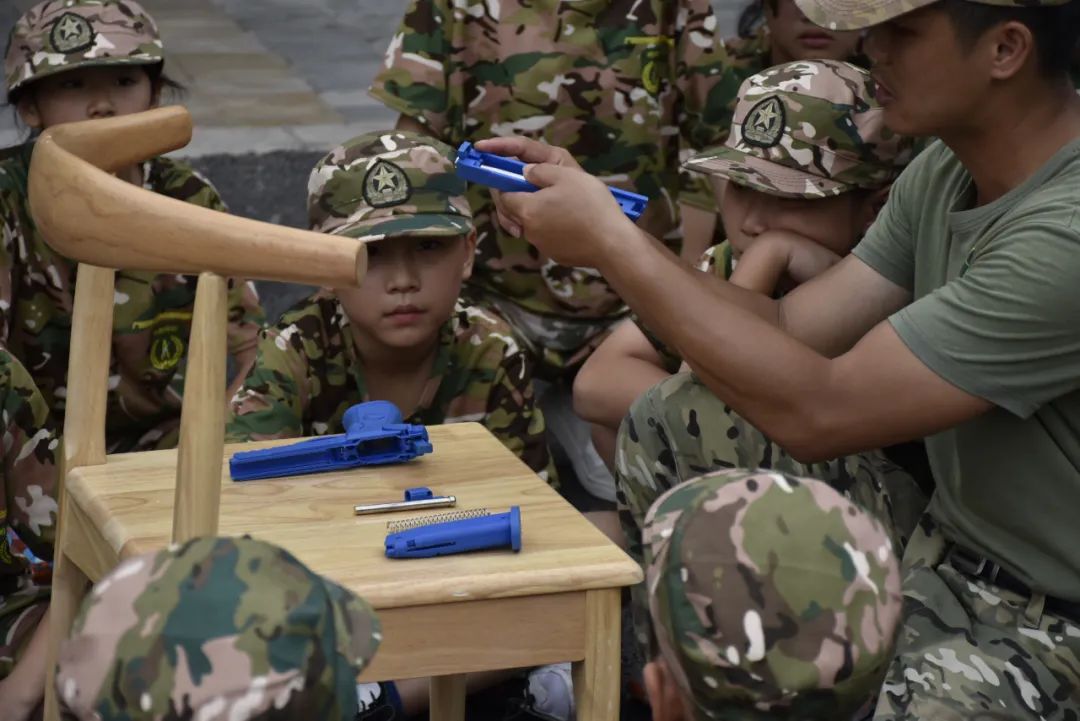 参观装备,教官对装备知识进行讲解,提升营员爱国意识。同时对我军军事装备进行了解,战术动作训练与使用,提升指挥能力。